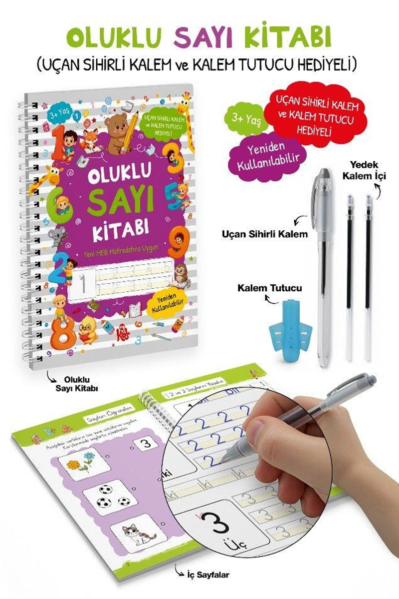 Oluklu Sayı Kitabı Uçan Sihirli Kalem Ve Kalem Tutucu Hediyeli 3+ Yaş